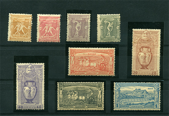 Ελλάδα 1896 Ολυμπιακή Ασφράγιστη ** 9 Αξίες (1 Λεπτό έως και 1 Δραχμή)